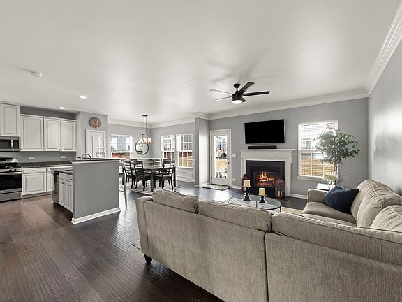Welcome to this beautiful, spacious 3 BED, 3.5 BATH townhome in Grande Park Subdivision. GREAT OPEN FLOOR PLAN with lots of quality features throughout including hardwood floors, crown molding, wainscoting, gas fireplace, granite countertops, stainless steel appliances and updated lighting. Three bedrooms upstairs including the primary with dual walk-in closets and ensuite bath with double sinks. Enjoy the convenience of the 2nd floor laundry room. FINISHED BASEMENT with a recreation space, a flex room that would make the perfect office space and an additional full bath! Nice large patio with fire pit out back with a privacy fence for your outdoor enjoyment. Brand new carpeting throughout the second level and stairs! Grande Park subdivision is a pool and clubhouse community with miles of walking trails, open green spaces, multiple parks, tennis courts, basketball courts and a sled hill. Walking distance to the elementary and middle schools! This is a must see!