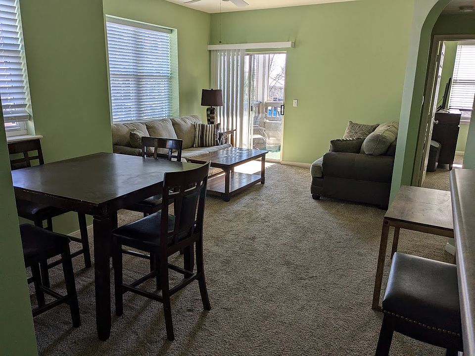 Sunny one bedroom, one bath, furnished cozy condo with deck. Updated appliances, paint, carpet. Large walk-in closet. A short walk to shops, restaurants, grocery store, and public transit. Well maintained complex includes pool, clubhouse, fitness center. Renter is responsible for gas, electric, internet, TV