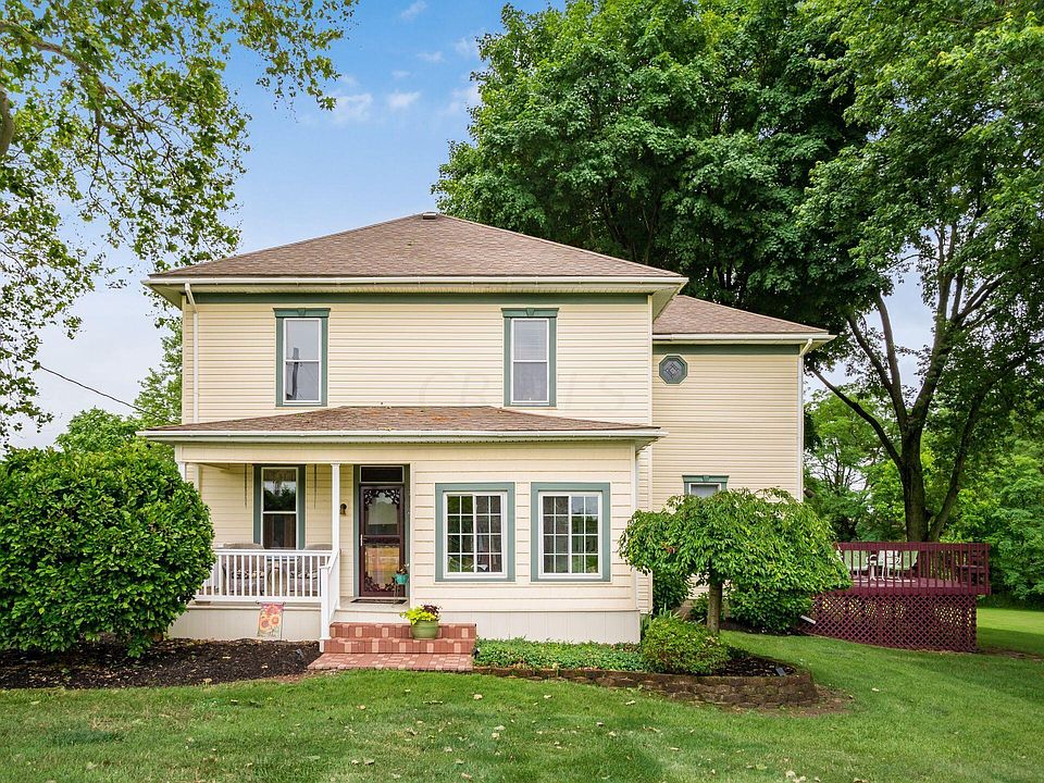 Incredible opportunity with this one of a kind farmhouse situated on 5.77 Acres in Pickerington North Schools! Top Level pride of ownership for the last 37 years from this seller! Original cabinetry in the kitchen, original wood floors and exquisite wood trim and woodwork throughout! A sprawling floor plan featuring a dining room, family room, living room, great room and sun room on the first level. Also an updated 1st floor laundry/mudroom and a renovated full bathroom with modern finishes and heated tile floors! 4 bedrooms upstairs with a full bathroom tub/shower combo. 18x40 detached garage with a 20x20 workshop is a great place to store your toys,tools or start a hobby! Covered front porch, side deck and rear patio give you endless choices to enjoy the peaceful setting of this home!