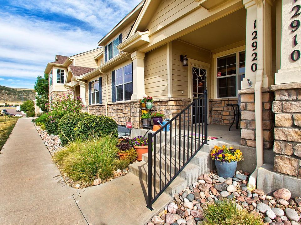 Great opportunity to own a wonderful townhome with a premium open space location! You'll love the quiet, peaceful location with gorgeous open space & mountain views from every window. Just a short walk to West Meadows Park and Hine Lake. The large windows bring the outside in for a light, bright, comfortable and open feeling. Beautiful new hardwoods span the entire main floor. The kitchen opens to the dining/living areas & features an eating bar, abundant cabinet and counter space providing a nice, functional workspace, plus all appliances stay! There is a cozy gas log fireplace and convenient main floor 1/2 bath. Upstairs there is a huge master suite with a spacious 5-piece bath & walk-in closet, an open loft area, hallway bath and second bedroom with great views. The oversized 2 car attached garage and full unfinished basement provide tons of storage options! This popular community boasts beautifully landscaped grounds, a private pool, EZ convenient access to C470 and more!