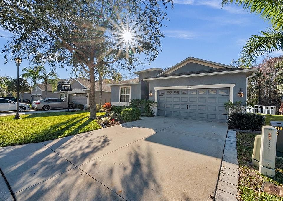 GATED COMMUNITY. CONSERVATION LOT. COMMUNITY POOL. GOLF CART FRIENDLY. PET FRIENDLY. What’s better than looking at mother nature from your own back patio? Looking with sherbet-like colored backdrop during daily sunsets! PURE BLISS. You will be delighted with deer, turkeys, bunnies and an array of birds to start. Take a deep breath in because your stress is about to melt away. Welcome to the Verandahs, a gated community nestled off State Road 52 with QUICK ACCESS to the Suncoast Parkway! It's a smooth ride to Tampa, St. Pete & Ocala. Your new home is located on a cul-du-sac and features 3 bedrooms, 2 bathrooms, 2 car-garage and a paved patio with a fenced-in yard. Open concept layout flows from the kitchen, to dining room and living room. Wood grain laminate flooring throughout the home with carpet in the bedrooms. Glass sliding doors lead to the screened patio with a naturistic view. Primary bedroom includes a walk-in closet, conservation view, and ensuite bathroom with private water closet, garden soaking tub, double vanities and glass enclosed shower. Items worthy of mention; adorable curb appeal with decorative curbing, new gutters & downspouts (2022), stylish laminate flooring (2019), exterior painting (2021), upgraded refrigerator (2021) and Westinghouse washer & dryer (2019), split floorplan with one bathroom leading out to the lanai, new kitchen backsplash (2021), outdoor shed, solid wood 42-inch kitchen cabinets. An all time favorite is the large community pool, playground, clubhouse, and fitness center. The Verandahs is surrounded in a picturesque setting with acres of nature, ponds & preserves. Walking the community is an all-time favorite for many residents with deer sightings at night & sandhill cranes in the morning. Enjoy the Gulf of Mexico a few miles away (approximately 10 miles). Easy access to cities like Tampa, St. Pete, Dade, Ocala & more. Short drive to Starkey Wilderness Park (camping & trails), US 41 & I- 75 and Buccaneer Bay in Weeki Wachee which is a natural springs water park (approx. 20 miles). We love our fur babies here at the Verandahs so doggy bags and disposal cans are available throughout. Publix shopping center and amenities are minutes from your door. Tampa International Airport is approximately a 35–40-minute drive. Bike to the Suncoast bike trail or spend a day at the Sunwest Water Park right at your fingertips! The tax bill already INCLUDES the annual CDD fee. LOW HOA ($50.00 per month). No flood insurance required. Survey, video & floorplan available upon request. Buy a Little Piece of Florida Now! Seller is Motivated!