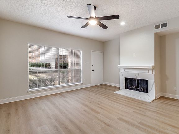 Beautifully renovated 2-bedroom, 3-bath condo located in highly sought-after Richardson ISD. This move-in-ready home features brand-new luxury vinyl plank flooring throughout and fresh, modern paint. The living area is anchored by a stylish fireplace with updated granite surround, creating a warm yet contemporary focal point.