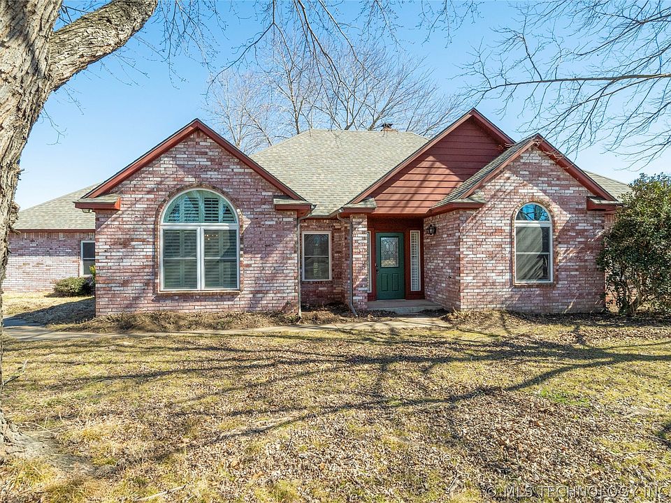 One story 3 bed, 3 bath, 2 car attach.2 car carport & RV carport. Bixby Schools on 2.5+/-ac. Open floor plan, ctr.island kitchen, fab master w/jet tub,separate shower, double vanities. home sf 2279+/-, heat & cooled attached sunporch 523 sf+/-. Horses permitted. No restrictions, no city taxes, no water bill. Close to freeway, Indian Springs CC, Walmart, Warren Theater, 5 min. to Woodland Hills Mall & 15 min. to downtown Tulsa. Sale contingent on lot split filing due approx. April 1, 2021.