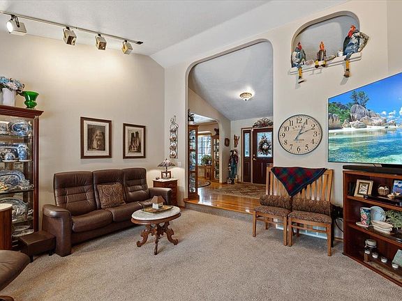 Here's one that is sure to please - a custom built rancher with a 3-car garage and a super-sized shop - plenty of room to park vehicles & other toys! Main floor has just under 2000 sq. ft. with an updated kitchen that includes a gas range w/vent hood, copper sink, new cabinets and granite counters. Large pantry, huge laundry room with space for extra fridge & freezer. Spacious primary suite with walk-in closet and full bath. Lower level has a large family room and a bedroom big enough to hold 2 beds, 3/4 bathroom and a locking cool room (for wine or food). Home has a front porch and big covered back deck. Shop is 54 x 30, finished & insulated, with heating system and hydraulic lift, 14' RV door, power. Additional outbuildings include a greenhouse and garden sheds. Tankless hot water system, newer furnace, roof replaced in 2022 on all buildings, raised garden beds. Located in Class A membership area for Suncrest Park lake & boating access.