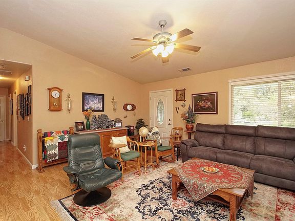 You'll love to entertain family and friends in this home. Very spacious 5 bedroom, 4 bath home with a living room, family room w/woodstove and a sun room. 2 car attached garage and also includes a detached 4 car garage with a granny unit that has it's own bathroom and a covered porch. Inground pool, sauna room and steam room. Large metal shop with 4 roll up doors and 40 solar panels that are owned. Home has 2 A/C units and a mini-split in the master bedroom. Has a half bath between home and shop. Located on a lovely 1.33 acres, just on the outskirts of town.