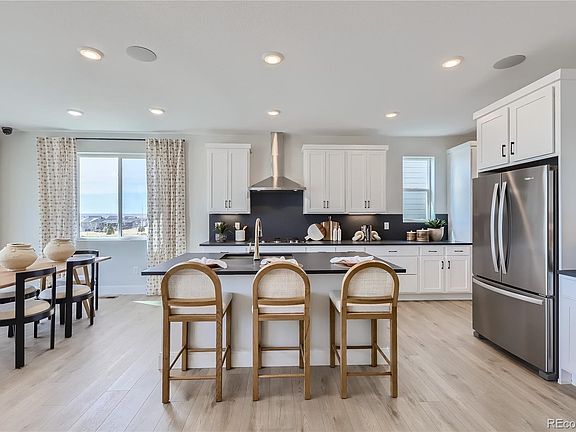 Check out this new ranch home available for a July 2024 move-in by Brookfield Residential! Traditional ranch home with 3 bedrooms, 2.5 bathrooms, separate laundry room w/cabinets/sink, 9’ walk-out basement, large extended back covered deck + a 3-car tandem garage! This home backs to a greenbelt offering privacy and expansive views of the plains. You’ll love the upgraded Gourmet kitchen with stainless-steel built-in oven & microwave, 5-burner gas cook top & stand-alone hood. This kitchen offers a large island w/ quartz counters, 42” white Shaker-style cabinets and a walk-in pantry. Primary suite features a 4-piece bath w/ quartz counter tops and frameless “euro” glass shower enclosure. Quartz counters in 2nd bath and laundry. The 3-car tandem garage w/ 8' door also offers 220 for EV's. Window blinds are included along with front yard landscaping. Located in Barefoot Lakes! This masterfully planned community is where you explore, discover, and explore some more. Barefoot Lakes features extensive trails looping around 100 acres of lakes, where you can kayak, paddle board and fish. There is a thoughtful community center equipped with an outdoor pool, work out facility and pickle ball courts, a unique lakeside park setting and wide-open spaces to take a breath and take it all in. Consider this your open invitation to nature. Must see! Photos and tour are of the model and subject to change. This ranch floor plan is modeled and available to tour today!