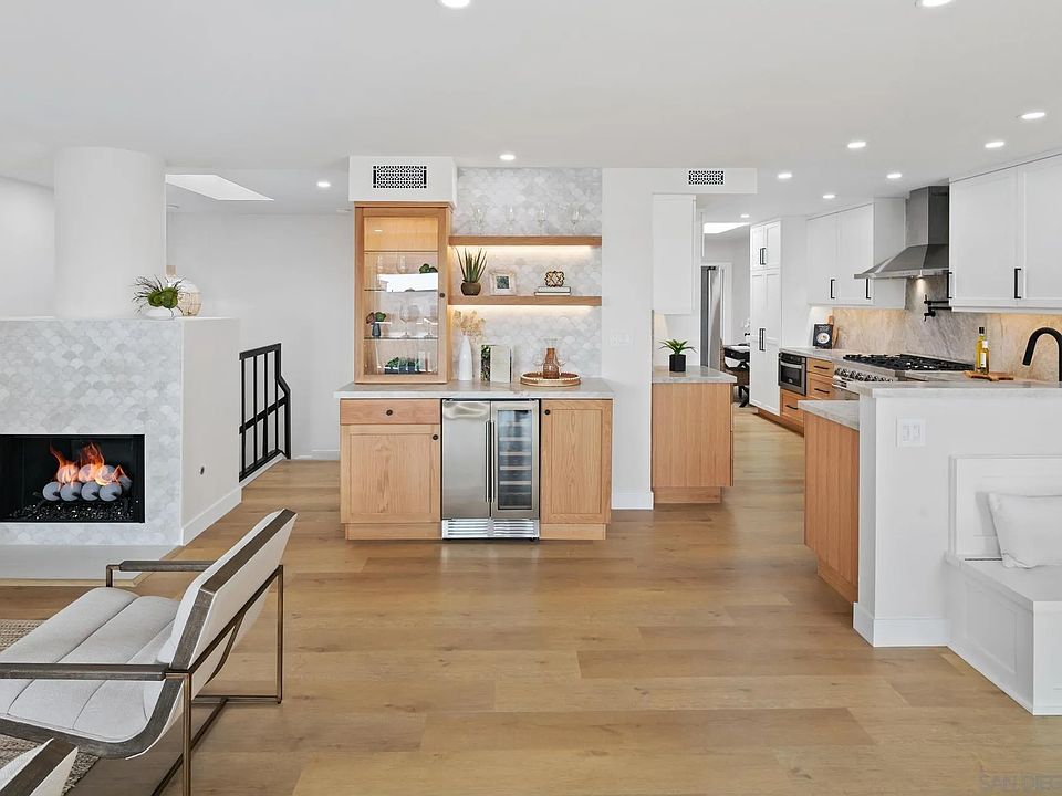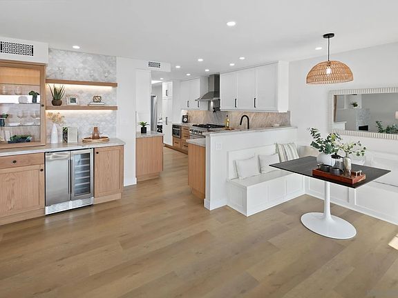No expense was spared in this high-end, fully renovated home, lovingly crafted by a contractor owner who poured his heart into every detail. The kitchen blends modern and traditional design, featuring white oak cabinets, and Taj Mahal quartzite countertops. The sleek, outlet-free backsplash and a striking bar with a wine and drink mini fridge add to the kitchen's elegance. Every corner of this home exudes luxury. All three bathrooms have been fully renovated, with the primary bathroom offering a spa-like retreat. The enormous primary bedroom features interior sitting areas and an exterior patio, providing a serene space to relax. Additional features include brand new slider doors and epoxy garage.