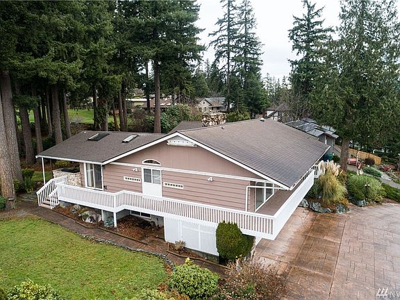 Spacious well kept home right on the golf course! This home is perfect for entertaining, enjoy large windows, sky lights and vaulted ceilings with 2 living areas, each w/ a fireplace, 2 dining areas & large kitchen w/ 2 ovens & huge island. Master suite w/ walk in shower & private patio w/ hot tub, Jr. master suites are both located on the main level + bed, full bath & home office. The fully finished basement has bonus room w/ wet bar, full bath, bedroom & large work space.