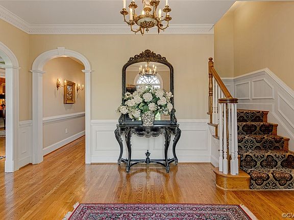 Elegant and timeless come to mind as you enter this 6 bedroom, 3 sided brick home, with walk out basement sited on .66 acres in FOXHALL! Colonial Homecrafters quality and exquisite millwork can be appreciated with the impressive trimmed arched doorways and paneled walls flanking multiple fireplaces. First floor highlights include designer Butler pantry, formal dining & stunning kitchen appointed with Prestige custom cabinetry, Wolf gas range, and massive island. Grand family room with built in bookcases! Massive screened porch with cathedral ceiling & gas fireplace. Second floor primary bedroom, sitting room, 2 walk in closets & luxurious bath. 3 additional bedrooms / 2 full baths plus large laundry room on 2nd floor. Third floor- 2 large bedrooms plus full bath & walk in attic access. Entertaining is a breeze in the grand basement with custom bar and masonry fireplace - open the doors to enjoy the stamped concrete terrace and professionally landscaped rear yard. Central vac, 3 car garage, irrigation, Surround sound. Approximately 250K in extras! Lot backs to Tuckahoe Creek full of wildlife. Foxhall tennis courts, clubhouse, & pool. Minutes from Short Pump eateries and mall.