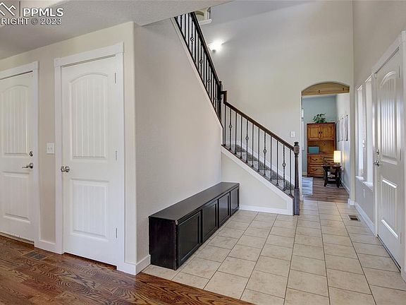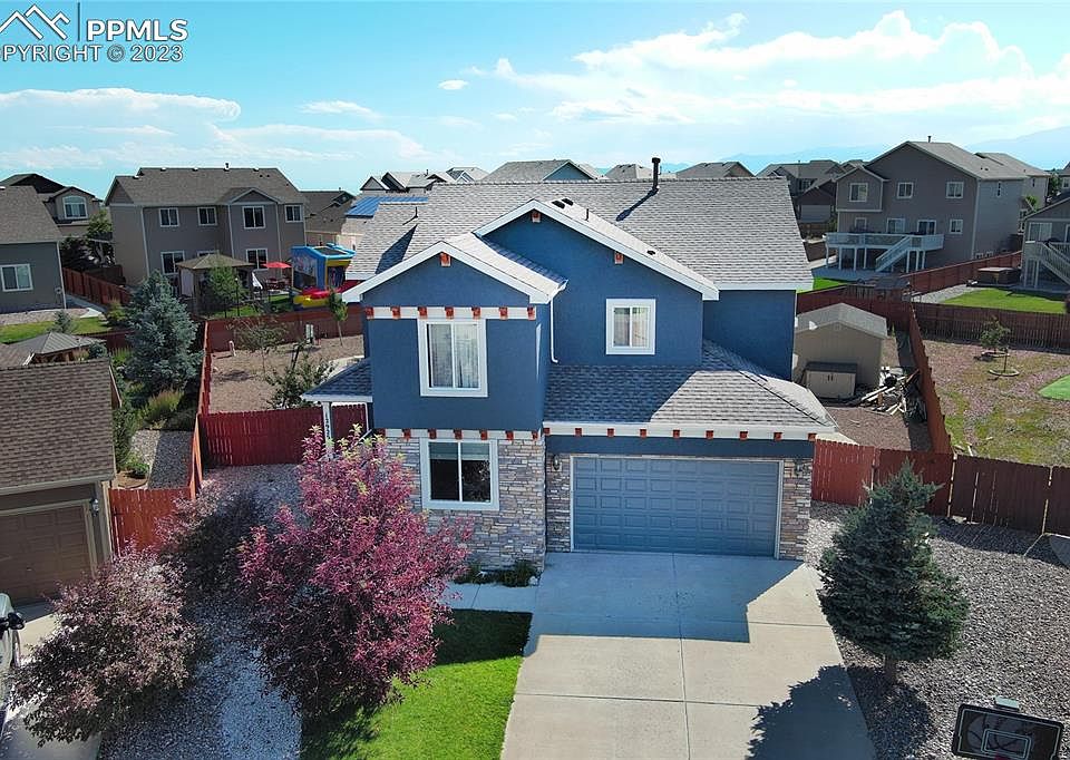 Fabulous home in one of our area's most sought-after master-planned communities! Enjoy live music in the parks, unwind on the hiking trails, golf on a Sunday morning. Walk to restaurants, shopping, and a brewery. Relax in the lazy river, take up a yoga class. or a game of basketball in the rec center. It's all here in Meridian Ranch! Minutes to the great shops, entertainment and hospitals along the Woodmen and Powers corridors. A short walk or bike ride to schools. A quick commute to most military bases. This home has a welcoming family room that opens to the kitchen and out to an expansive patio with fire pit and one of the largest fenced in yards. 2 story entry way, powder room, and a private office that could make a 6th bedroom complete the main level. Upstairs features a spacious master suite, 3 more generously sized guest rooms, a guest bath and an incredible laundry room with cabinets galore! Downstairs offers a large rec room with another bedroom, full bath and a finished storage room. Walking distance to the desirable Meridian Ranch Elementary School and walking trails near by. Everything you need in comfortable living is here in this highly desirable neighborhood.