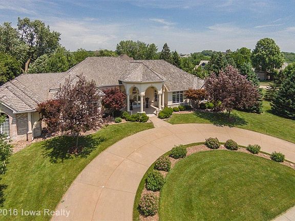 Updated ranch in The Woodlands, an upscale neighborhood in low tax Clive, Iowa on an .96 acre lot. Main floor has 11' ceilings, 4,483 sq.ft., 3 BRs + office, theater room, family room with fireplace, remodeled kitchen with Subzero refrigerator, gas cooktop, wine cooler, 3 1/2 baths. Basement has 1,120 sq.ft. finished with 4th & 5th bedroom, full bath & full kitchen; perfect for guests. Huge master bedroom suite with his & her closet, spa bath. Outdoor patio with fire pit. Originally built for John R. Grubb, well-known local builder.