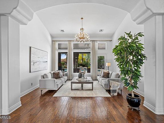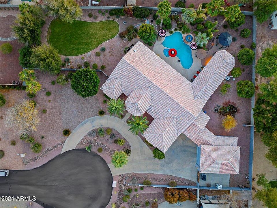 Incredible price improvement... Full roof replacement 2023. 2 new HVAC's 2022. Interior painted April 2024. Expansive resort lot focused to entertain and relax in a beautiful setting. Spoil yourself daily in the fully equipped outdoor kitchen overlooking the sparkling pool and spa. Spacious patios winding around to the outdoor shower and sprawling lawn. Double RV garage with workshop and built-in cabinets. Ready for a lift or basketball hoop to get your game on! Inside timeless rich hardwood floors carry throughout most of the home. Split floor plan with TWO master suites cater to a variety of living needs. Bonus room, office, home gym, playroom, or game room just off the living space! Entertain your heart out in the open concept kitchen great room with full wet bar & ice maker! Custom cabinets, Monogram appliances, under cabinet microwave and oven. Primary suite complete with sitting room and fireplace with patio access and luxury spa bathroom finishes. Don't miss this incredible property designed for the ultimate Arizona lifestyle. Close to Loop 303, I-10, Spring Training facilities, shopping and more!