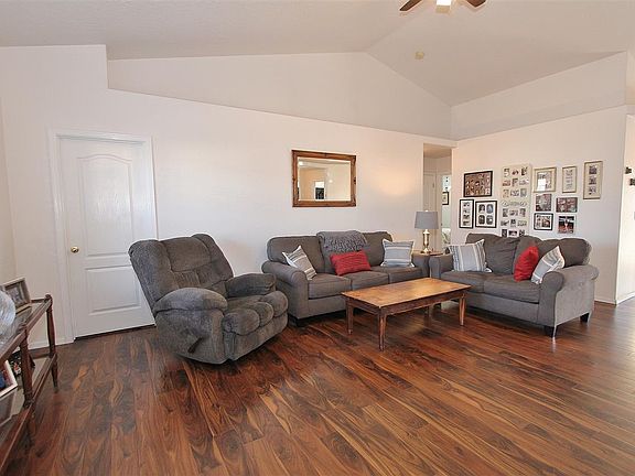 Single level 4 bedroom with split floor plan. Vaulted ceilings, neutral colors, newer laminate flooring throughout kitchen and living. Corner lot with full fencing and sprinklers on pressurized irrigation in a cul de sac. Kitchen features eating nook and pantry. Master suite with walk-in closet. Right around the corner from the park. Close to The Village, shopping, restaurants and more.