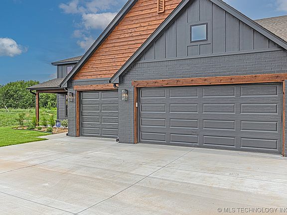Introducing the Juniper Plan featuring a covered front porch, 3 bedrooms plus a flex room, 2 full bathrooms, and a 3 car garage on one level. $20,000 included upgrades at no additional cost for being one of the first residents in Frazier Meadows! Luxurious interior finishes include 36" 5 burner gas cooktop and built in wall oven, Soft Close cabinet door hinges throughout the home, trash pullout on the island, 36" ventless fireplace with gas logs and stain grade beam look mantle, Luxury Vinyl Plank in entry, living room, kitchen, dining/nook, pantry, flex/study, & hallways! Premium building standards include James Hardie siding, Douglas fir framing, R-15 BIB insulation in perimeter walls, R-38 blown in insulation in attic, energy sealed exterior bottom plates at slab around perimeter walls, and exterior penetrations, doors, and windows are foam sealed to minimize air leakage. List of features in documents. Frazier Meadows is planned to have a neighborhood pool, fishing pond, trails, community playground, pickleball court, and more -- all in Bixby Schools just minutes from the new Bixby West Elementary!