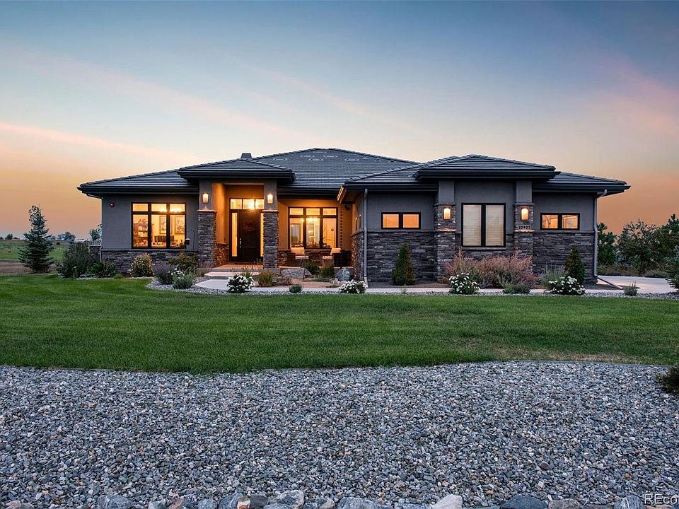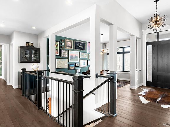 Luxury living converges with thoughtful spaces for work and play in this custom-built home within a gated community. The main level, with a fireplace and engineered hardwood floors throughout gives way to an open concept floorplan combining living, dining and kitchen. The generous kitchen features an expansive Carrera marble island, while quartz countertops encompass a coffee bar, luxe appliances and ample places to dine. Tucked into its own wing, the primary bedroom features smart blinds, a custom walk-in closet and a spa-like en-suite bathroom with heated floors, a soaking tub, heated towel rack, dual vanities and a rain shower. The other two main floor bedrooms are retreats unto themselves, each with its own en-suite bathroom. A formal dining room and office with mountain views round out the main floor. A visit to the lower level reveals an oversized rec room, a craft/bonus room, a second private office and a conforming fourth bedroom with walk in closet and ¾ bath. The entertaining spaces continue with a custom tiki themed speakeasy and 408 bottle wine cellar. Stepping into the backyard provides views of adjacent Boulder county open space, a hot tub, fire pit, built in outdoor kitchen, patio with pergola and in-ground pool.