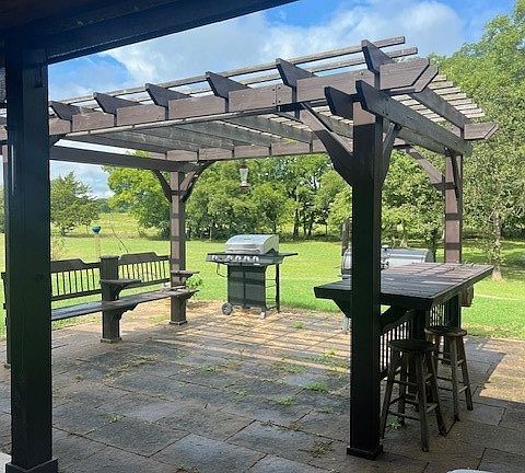 Welcome to this beautifully crafted home, custom-built in 2015 with thoughtful details throughout. The open-concept design showcases a spacious living area, granite countertops, and stainless-steel appliances. Enjoy peaceful evenings on the covered porches or under the pergola, where you can take in stunning sunsets and watch the local wildlife. Inside, you'll find built-in storage, a water softener, and a floored attic above the garage for even more space and storage. Energy efficiency is top of mind with spray foam insulation and an all-electric set up, helping to keep utility cost low. The property also includes a versatile shop with spray foam insulation, a small kitchen, a half bath (nearly complete), and two window units - ideal for hobbies, projects, or extra workspace.