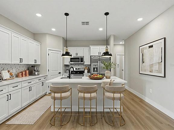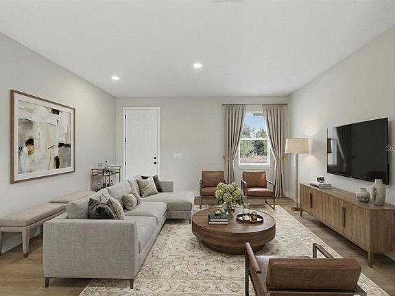 One or more photo(s) has been virtually staged. One or more photo(s) has been virtually staged. MOVE-IN READY! Welcome to this brand-new construction home. Upon entering, you'll be impressed by the open, airy layout, blending the living room and kitchen into a cohesive, expansive floor plan. This residence features 4 generously sized bedrooms and 2 beautifully designed bathrooms. The kitchen, a dream for cooking enthusiasts, showcases stainless steel appliances, a striking island, and neutral, calming finishes. The light-filled great room creates a welcoming atmosphere, perfect for both relaxation and entertaining. Escape to the spacious primary suite, offering a luxurious ensuite bathroom and an expansive walk-in closet. The primary bath provides a serene retreat, complete with a soaking tub and separate shower. Both bathrooms are tastefully appointed with double sinks, quartz countertops, and elegant tile finishes extending to the ceiling. Other key features include a practical laundry room with a sink, a covered lanai for outdoor enjoyment, and a two-car garage offering plenty of protection and additional storage space. Don’t miss out on the opportunity to own this brand-new gem in this neighborhood. Contact us today and make this dream home your reality!