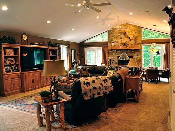 Beautiful Rustic 1.5 Story exemplifies quality through-out. 3BD, 2BA Kitchen-Custom Built Cabinets*Granite Countertops*Tile Backsplash* SS Appliances*Center Island w/seating*Breakfast Bar* Family Room-24x36*Stone Gas Log FP*Surround Sound*MST BR-Walk-In Closet* Sitting Area* Screened Porch*En Suite-Amish Vanity with Dbl Counter-Top Bowls*Travertine Tile*Custom Shower w/Bench & Rain head*Other Features Include-Alarm System*Recessed Lighting*Oversized 2Car Detached Garage*Dual Heat*6 Panel Doors*Storage Shed*Screened Front Porch*10 Acres