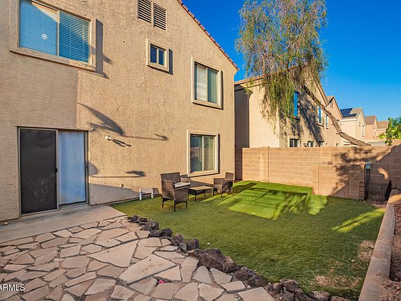 Step into suburban luxury! This 2005-built 4 bed, 2.5 bath stunner boasts an open floor plan with tile floors, sparkling brushed-nickel lighting, and white cabinets with matching appliances, fridge included! The kitchen's walk-in pantry adds function, while the 2-car garage offers storage plus room for a fridge & freezer. Upstairs: 4 spacious bedrooms, laundry with washer/dryer, and a master suite with walk-in closet & private bath. The backyard is a blank canvas for pool, turf, or play. Solar lease saves you $$$. Community perks include a park, playground, and splash pad—all moments from Luke AFB, Desert Diamond Casino, State Farm Stadium, Westgate, and more!