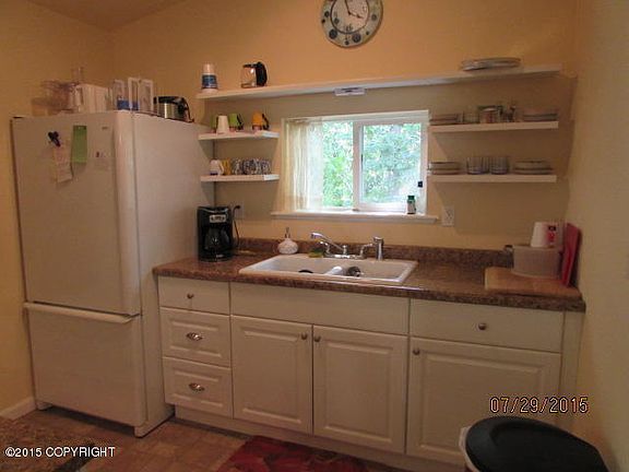Beautiful smaller ranch style home with immaculate interior, perfect for starter home or downsizing. Laminated wood in living area Bathroom has access from living area and bedroom, rear deck, level landscaped lot, storage shed, close proximity to Bear Paw lake public access, trails and 15 minutes to Wasilla.