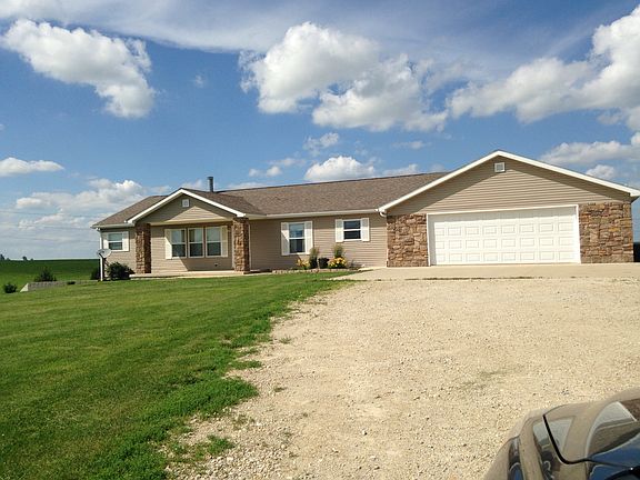 SALE PENDING: This beautiful home that is over 3400 sq feet (3200 sq ft finished) is located on 2 acres set just 2 miles out of town on paved road (driveway sits on gravel road about 50 yards from the paved road) . The home was built 8 years ago. The home is a modular built with 2x6 construction, there is a completely finished basement (9 ft ceilings) with a walk-out toward the west, 2 car attached garage that is large enough to fit 4 cars, a porch built out on the front along with a stoop below the porch for extra storage, heating/cooling geothermal, rural water, and stone fireplace. The house includes a little over 1700 sq feet upstairs which offers 3 bedrooms (master bedroom has a large bathroom including a soaker tub and a walk in closet), dining room, open concept from kitchen to living room, walk in pantry, basement includes over 1500 sq feet finished which has another bedroom, there are 3 full bathrooms in the house (2 upstairs and 1 downstairs), large closets in the each bedroom, the walk-out has decorative cement, and this home runs only on electric. Appliances in the kitchen (Whirlpool dishwasher, stove, refrigerator) will stay with the house. This home is very efficient and just 45 minutes from Des Moines on I-80. Enjoy the peaceful country living with this ready to live in home. (All closing and legal documents will be done through a loan officer at our local bank. Potential buyers are welcome to work with a realtor.) 04/02/16