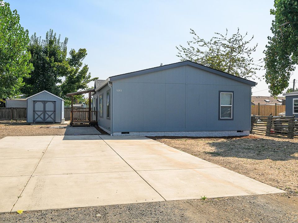 Like new Fleetwood home sits on it's own land. Plenty of room for RV or extra parking on the property. 10x16 Shop/Tool Shed for your outdoor storage. The Lot is bare , waiting for your finishing touches. Newly painted exterior with covered entry. Inside you'll find new carpet and flooring throughout. Large Great Room Living area. large Primary Bedroom and attached spacious Bath. Heat Pump for your cooling/Heating comfort.