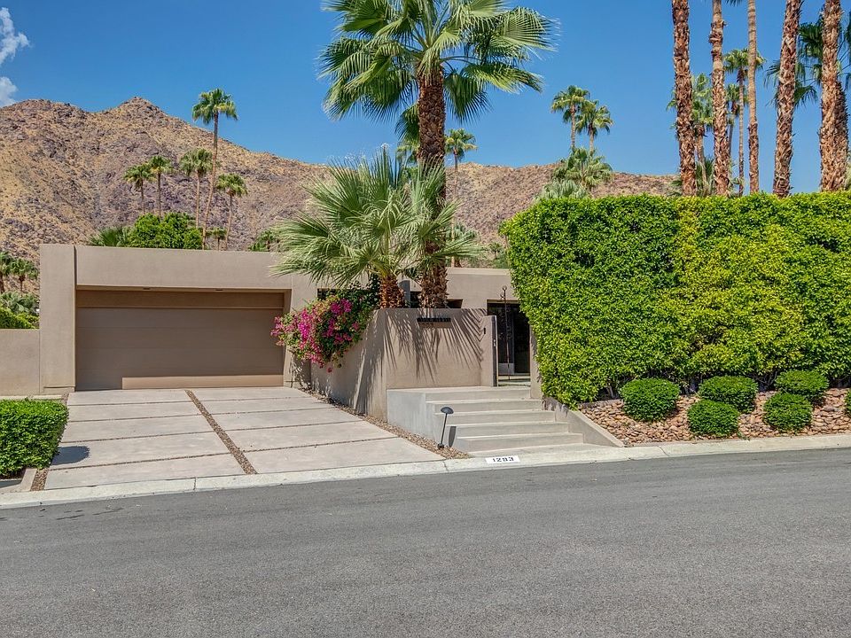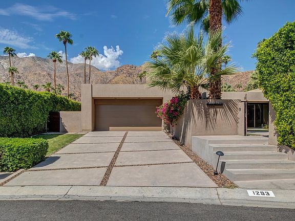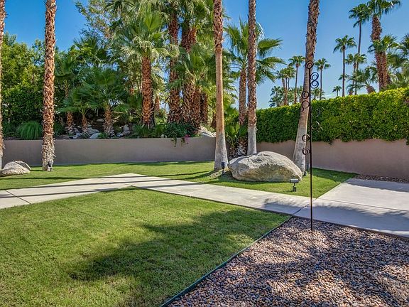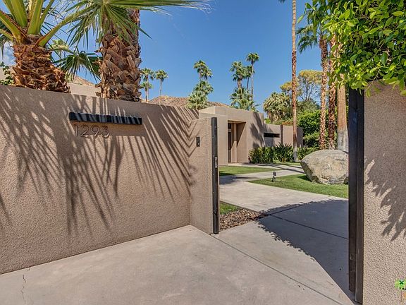 3D Tour at Virtual Tour Tab. This is an exceptionally built 4,326 sf "Stan Sackley Designed" Desert Contemporary featuring high ceilings and stunning mountain views! Located in Vista Las Palmas, privacy abounds. High/vaulted ceilings, clerestory windows/sliding glass doors, and custom sound throughout! The Living Room offers the see-thru fireplace. The Family Room, on the other side of the fireplace, has a custom wet-bar with wine cooler. The Thermador Applianced Kitchen is sure to please the Avid Chef! The Living Room, Family Room, two bedrooms & a bath include access to the pool and spa area, waterfall & "fire island". The 1000 sf Master Suite offers a huge bed-chamber with sitting area, massive walk-thru closet with lots of drawer space & the sumptuous Master Bath, with it's own urinal! The other two 500sf bedrooms offer ensuite baths, one of which has hall access for parties. Views abound from this secluded and cherished location. There are owned Solar Panels too! Welcome Home!