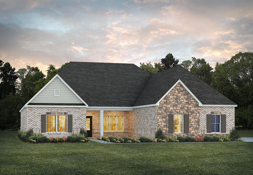 We know one thing for certain - the Hartwell is going to make your heart swell. A quaint covered porch opens into a foyer with adjoining dining room. The coffered ceiling and wainscoting pile on the character in these spaces and are a great primer for what's to come: the wide open great room, breakfast area, and kitchen. The unhindered flow between these three rooms makes this the perfect space for entertaining, and easy access to the dining room through a cased opening ensures that your dinner parties will be nearly effortless. One side of the house is home to the master suite, with large walk in closet and spa-like bathroom, and another bedroom with adjacent bathroom, which could be home to a nursery or home office. On the other side of the home you'll find two additional bedrooms, a full bath, and the laundry room, plus access to the garage through the mudroom hallway. The Hartwell also features multiple linen closets and dual pantries, so you certainly won't be lacking in storage!