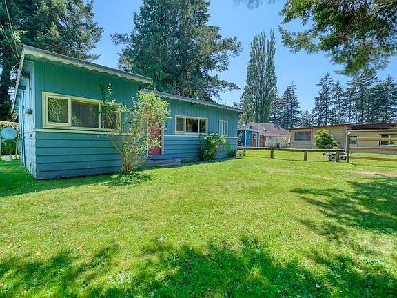 Classic West Side Beach Cottage on private road, steps away from the golf course and the beach. Located near the end of a quiet lane it is only a short stroll to the ocean where you can enjoy kayaking, sunsets, storm watching, sea lions and even whales. You don't have to move any further than your spacious deck to enjoy ocean views. This three-bedroom cottage features large wood burning fireplace in the living room and a peek a boo view of the ocean and Gulf Islands from the kitchen and the large south facing rear deck. Large private back yard for those summer BBQ's and almost 250 sq ft bunkhouse and storage to accommodate overflow guests and store your toys. The property has beach access which leads to the entire, and rarely used, west facing seashore. Extremely quiet but friendly neighborhood. Purchase will come with the installation of a brand-new septic system. This property is begging for your personal touches. Don't be late on this one. Affordable beach cottages with views don't come up often. Be sure to check out the online video tour!
