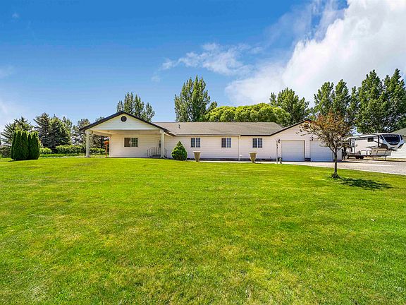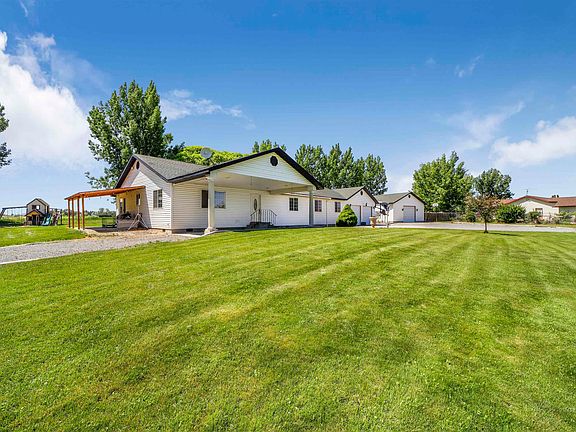 PRICE DROP! Vaulted ceiling, 4 large bedrooms, 60"-wide hallway, open living spaces, all on a single level = a home as expansive as the 1.01-acre lot it's on! Big windows brighten up the rooms & allow fresh air in from the shaded backyard. The sky-high ceilings & newer LVP flooring make the living/kitchen/dining areas attractive spaces to spend time in. Formal dining room off kitchen can also be office/hobby room. Spacious primary suite w/walk-in closet, large tub, tiled walk-in shower, & dual vanities. Central heating & AC, but Harman woodstove can easily heat the entire house on its own! 29x30' garage & 30x32' shop both have amazing storage space. All kitchen appliances & water softener incl. Fully-insulated shop features 220V, roll-up door, & woodstove. Room for animal(s) next to shop with existing shelter possibility. Driveway is large loop, perfect for trailers & guests! Underground sprinklers. Peaceful location in cul-de-sac & no neighbors to the south! One TFCC water share incl.