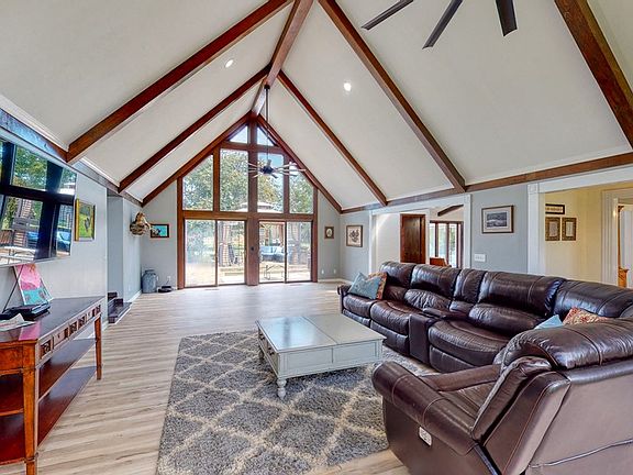 Large country home with updated spacious kitchen with wood cathedral ceilings, massive work island and abundant cabinets, large den with built-ins and wet bar for entertaining, spacious master bedroom & bath, 2 additional bedrooms w/ jack & jill bath, plus spacious in-law suite, sunroom w/ views of deck, in-ground pool area. In addition there is 88+- acres of mostly pasture land, 2 stocked ponds, metal equipment shed & metal pole barn. Hunters will never need to travel to pursue Whitetail Deer and Wild Turkey. Convenient to Kentucky Lake, shopping & I-40. When rustic meets traditional the result is charming & enchanting.