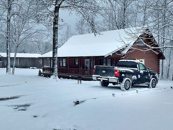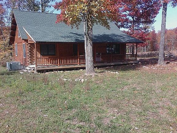 This cedar log home features an open floor plan, exposed beams, 3 Bedrooms, 2 full baths, 1316 square feet, hardwood beautiful pine flooring and steps , large front porch for your morning coffee , 30x36 barn with electric for your mini farming needs, and partially fenced on 2.81 acres! This cozy log is so charming !