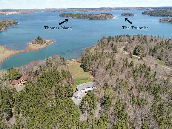 Sheltered by a picturesque speck of an island within Thomas Bay, this fully furnished Bar Harbor home provides ample living area, both inside & out. The 4 bedroom, 3 bath home is complimented by a 1 bedroom apartment, while outdoors the 5.77 acre lot offers abundant privacy, forested surroundings & a wide, sweeping lawn gently leading to 440' of owned frontage on a tidal bay. The home was built in 1984, with more recent additions being a cathedral screened room, oversized garage & covered front porch. 1st floor features include a kitchen with adjoining social area & breakfast nook, dining room, living room, full bathroom and a spacious great room. The great room's layout is highly adaptable, with options to enjoy as a shared space between the main home & apartment, or to dedicate this large room via lockable doors to either the main home or the 2nd story apartment. This clever design brings significant value to a ''primary residence'' owner who wishes to offer the apartment in Bar Harbor's lucrative weekly rental market. With the great room added in, the modest 1 bedroom apartment above it becomes a genuinely attractive vacation lodging option. The apartment itself provides a small, yet complete kitchen, living room with ocean view, bedroom, full bathroom and private entry & parking. In the home's 2nd floor you will find 4 bedrooms that include 3 guest bedrooms, a full bathroom and a master suite with its own deck overlooking Thomas Bay. Outdoor areas consist of a lofty screened room, ocean facing deck, full length covered front porch & a sizable lawn that easily guides to the ocean's edge. The shore here is a kayaker's delight with easy rowing access around the lovely ''backyard'' island, Salt Pond next door or a bit farther out to conserved Thomas Island and The Twinnies. The open nature of the setting affords spectacular views from inside the home & outdoors. A large attached garage, expansive storage building & plenty of parking add to the conveniences on hand.