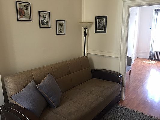 Spacious three bedroom apartment with a third room that converts to a 4th bedroom or study, in a townhouse, located on St. John's Place in Brooklyn, between Troy and Utica Avenues. Features and amenities include move in ready, fully furnished apartment; kitchen with full-size appliances, tiled flooring and high ceilings. Building is accessible to the "A", 3/4 trains and local buses. Shopping and restaurants are within a short walking distance. Sorry No Pets!