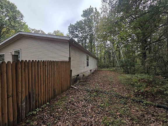 A great mix of lowland, wooded, and open field on this 20acre piece. The home and garage need work but both have good bones and can be utilized. Manufactured home consists of 3 bedrooms and 2 baths, a large living room with nice gas fireplace. Kitchen has lots of storage space and large laundry/utility room complete the home. The detached garage had a tree fall on the roof so that needs repaired. Property is being sold as is.