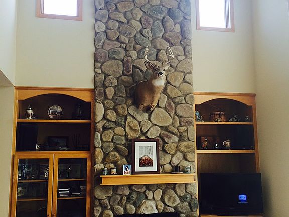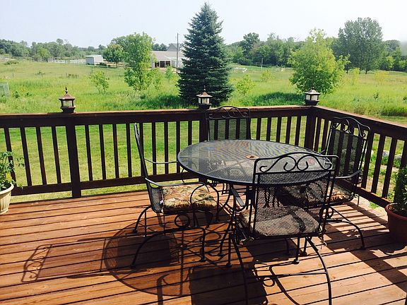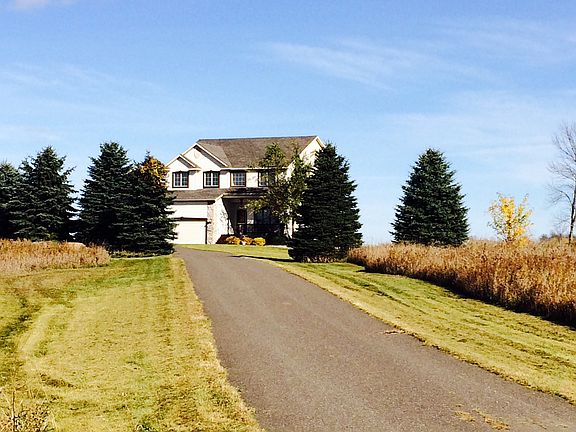 4 bed/3 bath 2 story walkout home on 7 acres with 40 X 70 pole building. Dead end street. 3 car attached heated garage. Home has formal living and dining as well as eat in kitchen and great room with 20' ceilings. Mix of hardwood floors and carpeting on main level with many built-ins throughout the home. 4 bedrooms on upper level with large loft area. Main floor laundry with den/bedroom. Master suite with walk-in and master bath with double vanity, jacuzzi tub and glass shower. 2,800 finished on 2 levels. Lower level unfinished. 350' paved driveway with large parking area in front of garage. Tenant responsible for utilities.