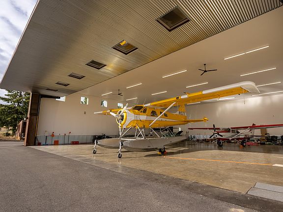 A PILOT'S DREAM! PRIVATE AIRPARK ''HANGAR HOME'' AT CARLIN BAY, COEUR D'ALENE LAKE. The perfect North Idaho Base Camp with direct access to a 2750' grass strip and incredible sights to explore. Plane at the ready...a mere 20 paces from the attached FULLY-FURNISHED luxury living quarters. The 2800+ SF, floorplan includes 3 bedrooms (each ensuite), an open living, kitchen and dining area w/nana doors that open up to a massive covered patio w/full kitchen, fireplace and amazing views. The 5600 SF hangar features a 65' door with an 18'4'' clear span and radiant heat floors w/in-floor drain. A detached 50'x60' pole barn provides extra storage and a built-in ''gym'' room with dedicated heat & A/C. Secondary waterfront access to private community beach & picnic area at Carlin Bay included.