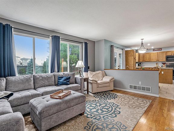 Welcome to this beautiful two-story home located in the desirable Hunters Glen neighborhood. As you enter, you are greeted by a spacious living room, creating a welcoming and open atmosphere. The kitchen and adjoining dining area have been thoughtfully designed with functionality and socializing in mind. Ample cabinet space and an eat-at bar encourage casual dining and provide convenience. Stepping outside onto the back patio, you'll be greeted by an expansive open green space. The large lawn and towering trees create a picturesque backdrop, offering an ideal setting to relax and enjoy the outdoors. Upstairs, you'll find four bedrooms, ensuring plenty of space for everyone. The primary bedroom is particularly impressive, boasting a generous size and featuring an en-suite bathroom. Additionally, there is an adaptable area that can serve as a playroom, home office, or be finished to create an additional bedroom, allowing you to customize the space to suit your needs. Going to the basement offers a whole new area to utilize, providing additional flexibility and possibilities. Enjoy a morning jog or an evening stroll around the nearby Hunters Glen Lake, located just one block away. Convenience is key in this neighborhood, as you'll find yourself just two blocks from the community pool and tennis courts. Additionally, you're only minutes away from the Orchards Mall, providing a variety of shopping and dining options. With the added advantage of being close to the RTD light rail, as well as an abundance of retail and restaurant options in the vicinity. Don't miss the opportunity to make this exceptional residence your dream home!
