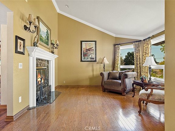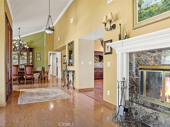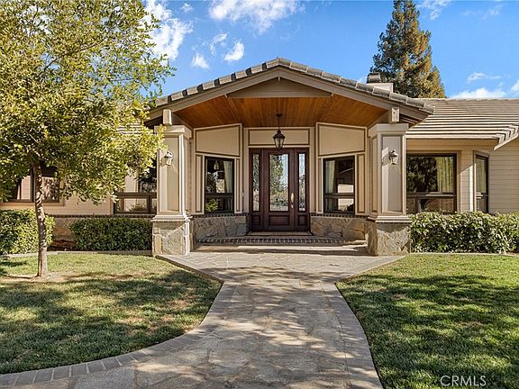 Beautiful traditional 5 bedroom home on a large lot in a serene setting. This home really has it all! Enter off the front porch to a formal sitting room with a cozy fireplace and dining room with picture windows. The gorgeous custom gourmet kitchen has a huge island with room for many stools, all stainless steel appliances like the 6-burner stove with pot filler, double ovens and built-in refrigerator. The kitchen opens to the large family room with charming brick fireplace, french doors to the rear yard and wood floors to one side a built-in Library/office with glass french doors and view of the front yard. On the other side of the first floor there is a very large primary suite with vaulted ceilings and it's own patio with french doors to the pool/spa. The primary suite has a very large walk-in closet with center island, and an updated bathroom with separate bathtub and shower, double sinks and granite counters. On the first floor are 2 additional bedrooms and a full bath with double sinks. Upstairs is a loft with built-in desk area and two more bedrooms with a Jack and Jill bathroom. The completely landscaped rear yard is picturesque with over 14 citrus trees like lemon, lime, orange and avocado, a sparkling pool and spa, built-in barbecue area and huge flat grassy yard with field lights and a separate utility storage area with lights. There is gated RV parking with room for full size RV and 30ft trailer with hookups for sewer, water plus a 30 & 50 amp electrical. 3-car attached garage.