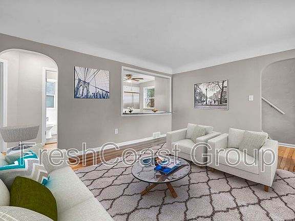 3 bedrooms / 1 full bath (two bedrooms on the main level; large finished bedroom upstairs) Updated kitchen: modern cabinets, counters, tile backsplash, breakfast pass-throughHardwood floors on main level; refreshed full bath on first floorDetached 2-car garage; residential yard space Nearby recreation: close to Garfield Park Reservation (trails, picnic areas, Mill Creek waterfall)