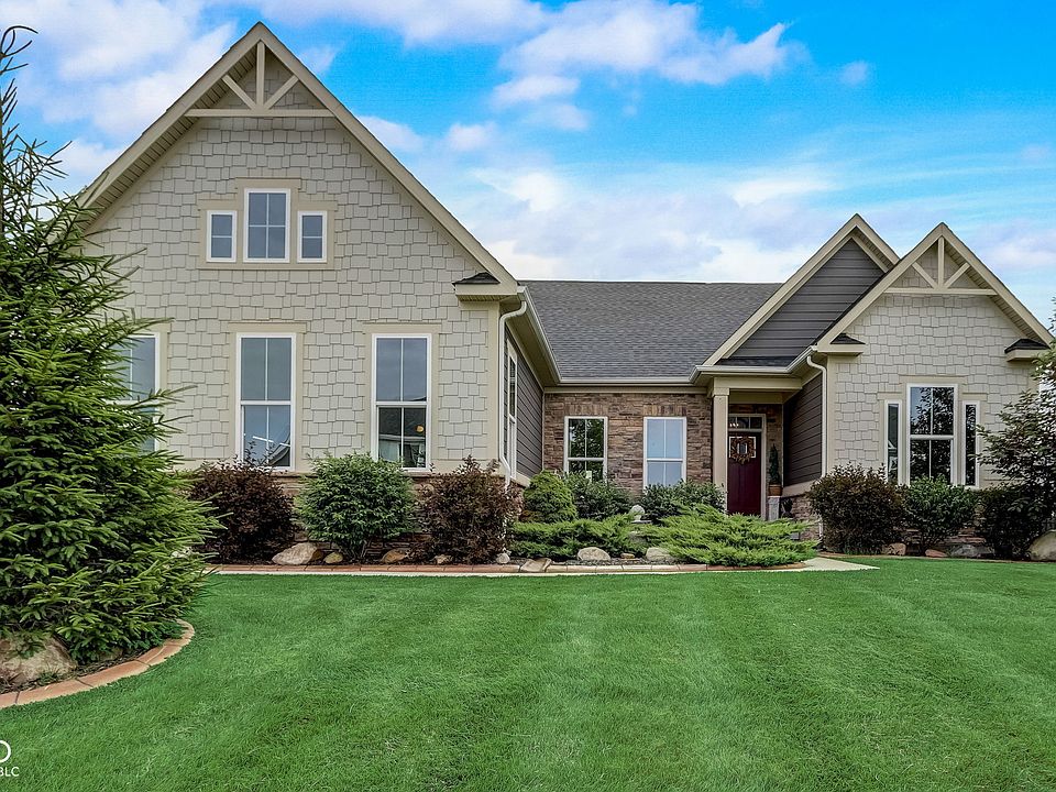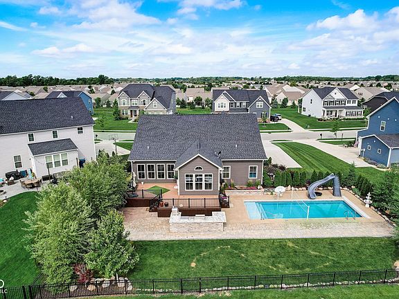 Welcome to this stunning 4-bed, 3-full bath ranch home in coveted Turnberry that epitomizes luxury living. The open layout creates a seamless flow throughout the home, showcasing the grandeur of the property from the moment you step inside. The heart of the home, the gourmet kitchen, is a chef's dream, featuring waterfall quartz countertops, upgraded cabinets, a huge island, stainless steel appliances, a gas cooktop, water purification system and double oven that flows into the great room complete with a cozy stone gas fireplace. The morning room with a vaulted ceiling offers breathtaking views of the inground pool and tranquil pond, creating a serene and picturesque setting for everyday casual dining. For special occasions, the formal dining room provides the perfect space for formal entertaining. The updated baths boast luxury finishes, adding a touch of elegance to this already impressive home. An entertainer's paradise awaits in the full finished lower level offering a media room, surround sound, wet bar, office, 4th bedroom & a full bath that provides endless opportunities for relaxation, recreation. Step outside to the Trex deck, patio, inground pool and outdoor kitchen with pizza oven, all overlooking the fenced premium pond lot, offering a private oasis for outdoor enjoyment. This home includes a spacious 3 gar garage complete with epoxy flooring & built-in storage ensuring ample space for multiple vehicles while your tools & equipment are neatly organized. This home is a rare find, offering a perfect blend of luxury, comfort, and entertainment possibilities, making it an ideal retreat for the discerning homeowner.