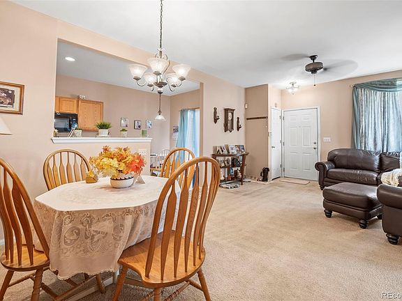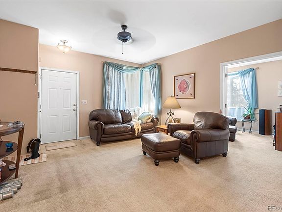 The living room, bathed in natural light, showcases carpeting and tasteful recessed lighting. Two spacious bedrooms are accompanied by a versatile office that can easily transform into a third bedroom to suit your needs.