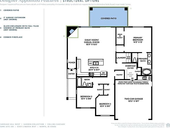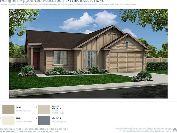 "The Collins". This gorgeous single story home offers 3 bedrooms and 2 bathrooms. The open layout dining and living rooms flow into the kitchen offering a perfect entertaining space, continuing out onto the covered patio. Kitchen has large island with breakfast bar seating and lots of storage space. Escape the day in the large primary suite and relax in the full tile shower. Photos are similar and may include options not available at this price. BTVAI