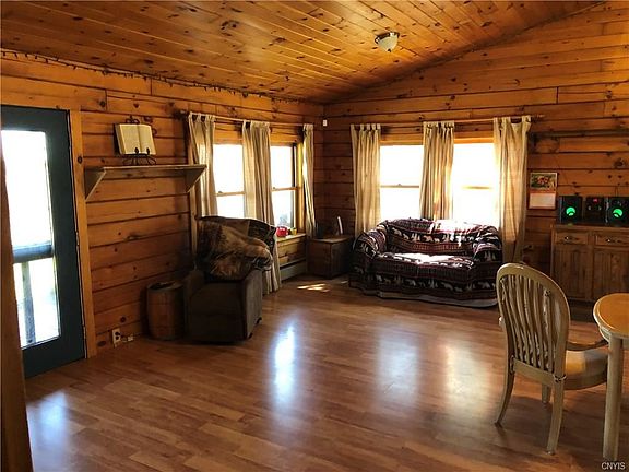 Comfortable log home on 3.5 acres of land. 3 stall detached garage and almost 700sq ft guest house. Main house features 1 bedroom and large bath on the main floor with open living room/ kitchen combo. Open floor plan perfect for entertaining. Huge finished basement with bar and full bath. Could be easily converted into more bedrooms. Home also features large front and back decks with a beautify view; the perfect spot to have your morning coffee. Newer roof, furnace and hot water heater. Also, a fourth stall over sized detached garage. Perfect location for a hunter or ATV, snowmobiler, or if you just want peace and quiet. Call today for your private showing!