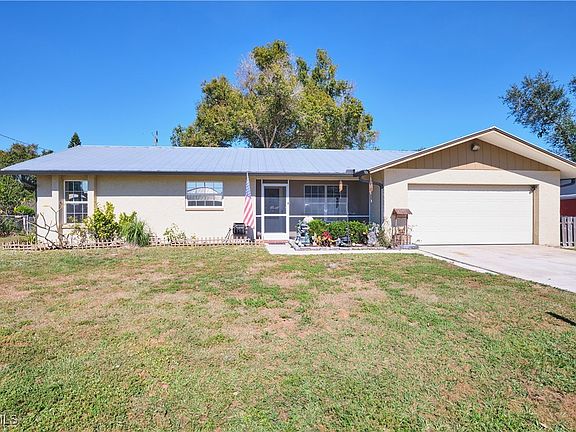 Enjoy outdoor living at its best with a large screened lanai, screened front porch, and a fully fenced backyard complete with an above-ground pool and a large storage shed. The metal roof provides peace of mind, and the 2-car garage includes a convenient laundry area.