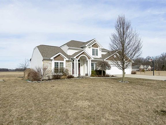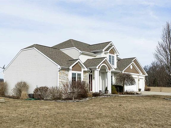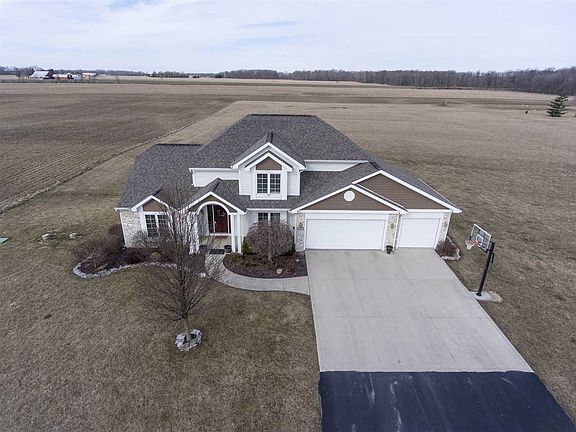 Stunning one-owner home on 4 acres in Hoagland! Have you always dreamed of a modern home with its own acreage in the country? Your opportunity is here! This well-maintained home offers over 2,700 sq.ft., 3 bedrooms, 2.5 bathrooms, a 3-car garage, and is USDA eligible! Upon entry you will notice the attention to detail as the curved, open staircase leads into the spacious great room complete with elevated cathedral ceilings, stone-wrapped fireplace, plenty of natural light, and ceiling fan! The chef's kitchen offers stainless steel appliances, plenty of white cabinets for storage, corner pantry, and desk! ALL appliances stay, making this a truly turn-key home! Need more room to dine or possibly a den? The formal dining room can be configured to your liking! The main-level master suite offers vaulted ceilings with a shelf, ceiling fan, double sinks, jetted tub, stand-up shower, and walk-in closet! Upstairs you will find 2 comfortably sized bedrooms, a large loft, and full bathroom! Head downstairs where another 750 sq.ft. of finished space can be used for a gaming area, theater room, or storage! Additional features include a newer furnace, new water softener, newer main level plank flooring, new paved driveway, new rear patio & patio door, neutral paint, and a reverse osmosis system! Entertain guests with BBQs on your spacious backyard patio during the warm summer months! Your new home has arrived and is waiting for you!