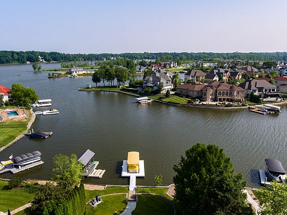 Geist Lakefront Home with Great Open Water Views while Located in a Deep Water, Protected Area of the Lake. Mature Landscaping offers Wonderful Privacy at the Pool & Expansive Deck. Boat Dock w/Power Lift is Included. All Brick 2-Story Home offers Spectacular Views w/an Abundance of Large Windows & Doors thru-out. 2-Story Entry & Great Rm set the tone w/open floor plan. Spacious Family Rm features 12' Ceilings, 3 Walls of Windows, Gas Frplc & is open to the Kitchen. Main level Master has 11' tray Clgs, Frplc & Access to the Pool/Patio Area. Don't miss the 2 Walk-in Closets, Whirlpool Tub & Lg Shower. Upstairs features 3 additional Bedms & Loft. Daylight Basement W/Fam/Rec Rm, 4th Frplc., Wet Bar, Home Theater, Exercise Rm & 4th Full Bath