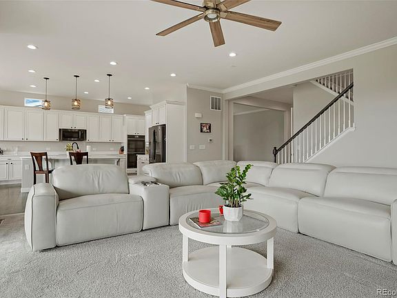 Million Dollar Views!! Enormous modern 2-Story home w/ walk-out basement. As you enter this home, you are immersed in neutral interior paint tones & decor. Main level boasts a large bedroom w/ ensuite 3/4 gorgeous white chevron mosaic tiled shower, walk-in closet, a formal dining room, stunning kitchen with a huge Quartz island breakfast bar & counters, galley style kitchen, induction cooktop, convection double oven, microwave and refrigerator. Soft close drawers and cabinets. tons of Antique white cabinets line the kitchen wall, perfect for storage. Eat-in kitchen area, open & bright, tall ceilings, huge walk-in lighted pantry. Kitchen opens up to Sizable great room, w/ gorgeous white stone fireplace surround. Windows Galore, big sliding glass windows open up to back balcony, enjoy the views from your Great room or Balcony, absolutely breathtaking! Second bonus main level room, can be used as an office/den or non-conforming bedroom, no closet, 1/2 guest bath and formal laundry room, laundry room is also pre-plumbed for a utility sink. Upper level features a very large loft area, 2 secondary bedrooms with walk-in closets respectively that share a jack-n-jill full bathroom w/ dual sinks. Another 3/4 hall bathroom. Primary is gargantuan! Tall windows, spacious primary retreat that is pre-plumbed for a wet bar, a 5-piece ensuite bathroom, claw foot tub, huge glass enclosed shower with cobblestone flooring and mosaic tile surround, separate vanities, dual walk-in closets, heated towel bar for that added convenience, and tons of natural light. Basement features a permitted finished Family room/Bonus Room w/ walk-out access, waterproof engineered LVP flooring, theater room w/ LED lighting & wetbar vanity, a bedroom w/ ensuite modern 3/4 shower, walk-in closet and windows for extra light! Additional area of basement unfinished for storage or endless opportunities. This home has a concrete pad that is HOA approved for a garden shed.