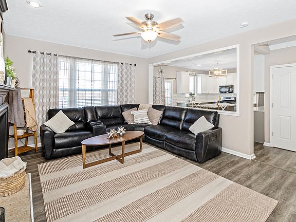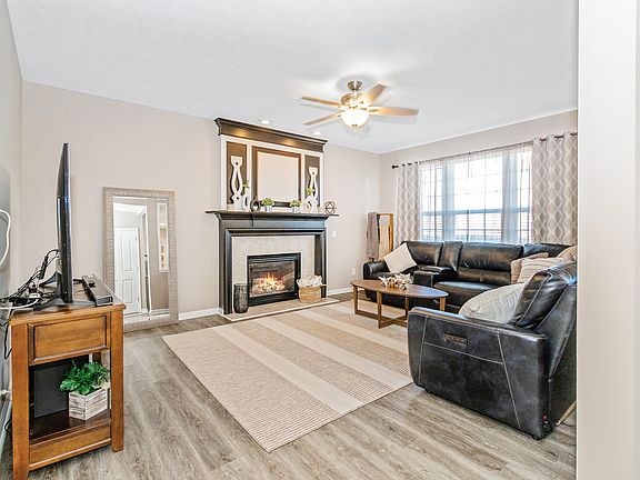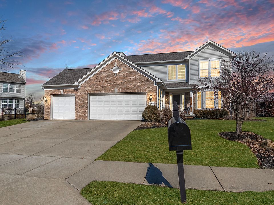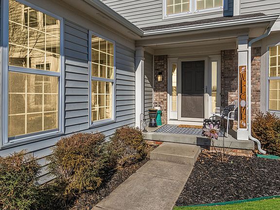 This charming home, nestled in a sought-after community, offers a plethora of amenities such as adult and kiddie pools, playground, tennis and basketball courts, sand volleyball, walking trails, and tranquil ponds with water fountains. The dramatic 2-story entry floods the space with natural light, creating a welcoming and airy atmosphere. The open floor plan, adorned with beautiful luxury vinyl plank flooring, seamlessly connects the updated kitchen with its 7-foot-long extended center island, granite countertops, stylish tile backsplash, white cabinets, and stainless-steel appliances to the cozy family room with a fireplace. The dining room/living room combo provides versatile space, ideal for an office or playroom. Upstairs, newer carpeting adds to the inviting ambiance, alongside a spacious master bedroom featuring vaulted ceilings, a master bath boasting a garden tub, separate shower, large vanity with dual sinks, and a convenient walk-in closet. Additionally, there are three more bedrooms for added versatility, and an additional full bath with updated flooring, ensuring comfort and style throughout. The unfinished basement holds great potential and includes an egress window and plumbing rough-in for future expansion. Outside, a privacy fence and dual patio areas, one with stamped concrete, offer ample space for relaxation and entertaining. The roof was replaced at the end of 2023, ensuring durability and longevity for years to come. With a 3-car garage and proximity to shopping, dining, recreation, and award-winning schools, this is truly an ideal place to call home!
