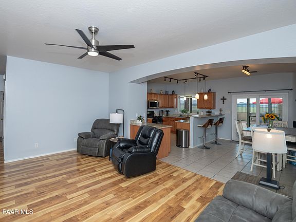 Beautiful Quailwood home bordering the State Land with a prized North/South Exposure. Backyard view fence displays incredible and endless views of the Bradshaws and open prairie (no backyard neighbors). Covered patios in both front and back offers a variety of entertainment options. The back patio is enclosed which is like having an extra room on your home. Low-maintenance landscaping on drip makes your weekends, time to relax instead of time for yardwork. Large public park, clubhouse with State-of-the-art fitness center, tennis courts, pickle ball and two pools. This home is move in ready. Inside you'll find a mix of tile, laminate flooring, and granite counters. All the appliances are included. You will fall in love with the Views!!!